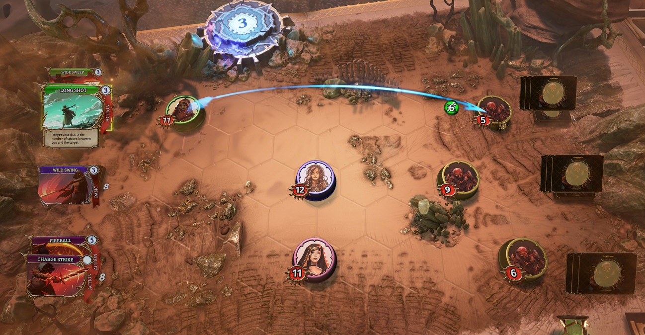 多角色甲板驱动战斗在战斗遭遇期间,玩家可以根据他们的抽奖卡向每个英雄发出命令。卡片的随机抽取在每个回合都会带来新的和有趣的挑战,玩家可以通过定位游戏来考虑他们最好的即时战术选择,并优化他们的进攻和防守能力,同时利用可能出现的任何卡牌协同效应通过结合三位英雄的独特能力来平局。