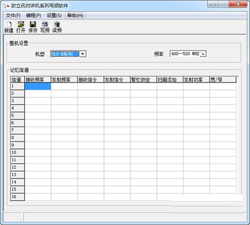 1、欧力讯对讲机写频软件可适用于OLY-N系列机型2、支持修改1-16记忆信道的接收频率、发射频率、发射信令及发射功率大小,修改宽带或窄带数据。