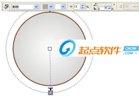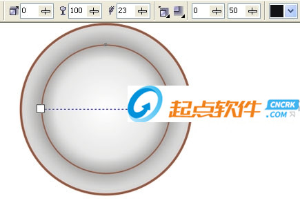 在工具栏中选择交互式填充工具,填充类型选择射线,颜色为C:0 M:0 Y:0 K:10和白色,从圆形中心向外拉出一个渐变,给盘子上色,具体设置如下: