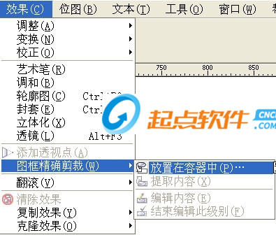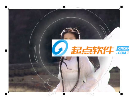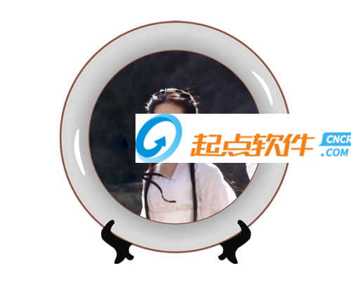 按ctrl+I导入一张小龙女的图片,这个画面美丽清冷,很符合瓷器给人的清新雅致的感觉。保持图片选中状态,选择效果->图框精确剪裁->放置在容器中,出现黑色的箭头后点一下盘子里的小圆,图片就进去了。