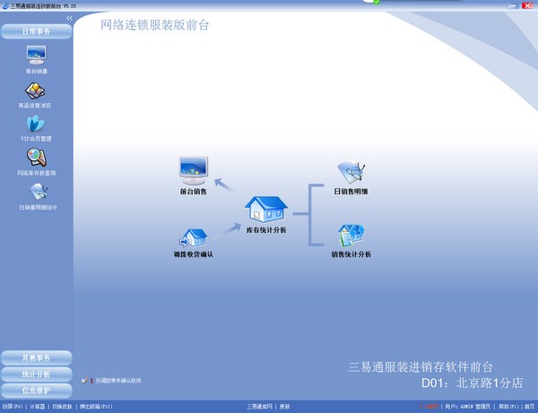 软件界面清爽简洁,操作直观简单,易学、易用、易管理。系统由后台管理与前台收银组成,前后台职责分明、安全高效;实时掌控各店铺进销存数据及经营情况,商品信息与VIP会员信息统一管理,统一进货与配送调拨,实现多店铺集中统一网络化管理。软件由采购进货,库存调拨,前台销售收银,库存管理,商品管理,VIP会员管理,移动客户端,统计分析等几大模块组成;支持条码标签打印、手机短信群发、多样性收款、手机及ipad查询、微信\支付宝扫码支付等功能;支持扫描枪、小票打印机、钱箱、顾客显示屏、条码打印机、盘点器等硬件。