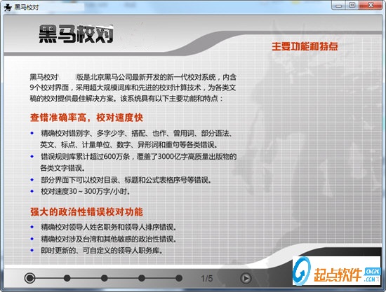 黑马校对V18破解版是一款强大的文字校对软件,软件支持各种主流文字处理和排版系统的文件格式,支持各种专业文稿的校对,用户可以根据一些在文章中出现较多的字词,选择使用的文库,帮助你提高识别准确率,有了黑马校对软件,告别人工纠错,文章纠错不再烦恼【功能特点】