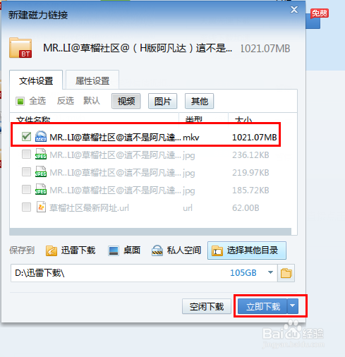 待分析种子文件完成后,就会弹出“新建任务下载”窗口,勾选要下载的视频文件,点击“立即下载”按钮。
