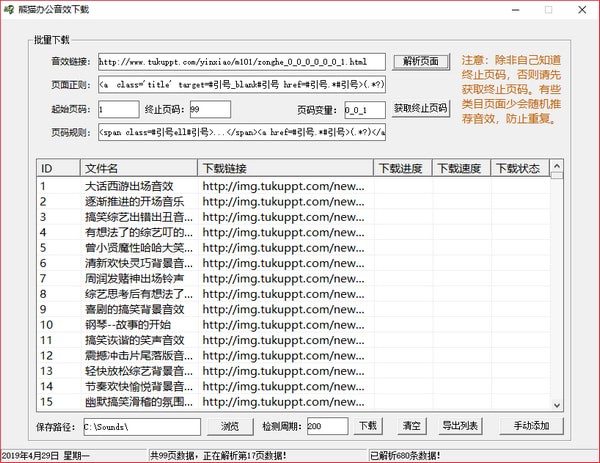 1.有说下载慢的,有翻车下不了的,所以现在加了一个导出列表,导出的列表文件包含文件名和链接,用||分割。因为是自己用,所以没考虑那么多。2.规则是里面默认自带的,不用修改,只需要改动需要下载的链接即可。