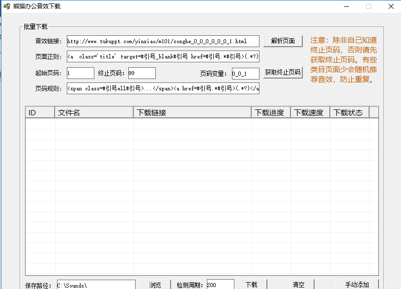熊猫办公音效下载器是一款可以从熊猫音效进行批量办公音效下载的工具,如果你在工作中需要用到各种熊猫办公音效都可以使用这款完全免费的熊猫办公音效下载器进行双击下载工程。