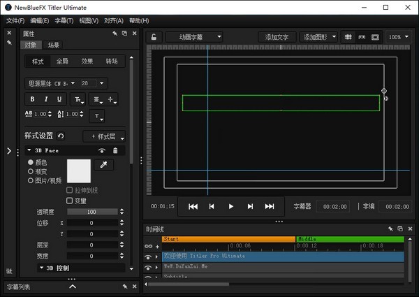NewBlueFX Titler Ultimate是一款专业字幕编辑软件,NewBlueFX Titler Ultimate拥有直观的界面和强大的标题工具。通过拖放工作流,NewBlueFX Titler Ultimate使得快速入门变得很容易。包括 250+ 内置的动画模板和 Title Designer.标题设计器。NewBlueFX Titler Ultimate是最有效的字幕制作工作流程解决方案。设计反馈,编辑你最喜欢字幕。新版本极大改善了对中文及中文字体的支持。使用它,你可以很方便的给视频动画添加字幕,同时还能给字幕添加各种效果,让你的视频显得更有特色,同时,插件兼容了 Adobe After Effects CC、Titler Standalone Host 等软件,对于视频制作者来说,是一款很不错的字幕工具插件。【软件特点】