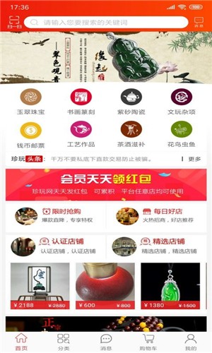珍玩网app是款专注于古玩贩售的手机购物软件,珍玩网app这款软件内汇聚了许多优选、精选的正品古玩供大家选购,陶瓷、漆器、字画、紫砂壶、墨宝等古玩类目都应有尽有,让你足不出户,就能游览整个古玩市场!如果是稀有的真迹古物的话,平台还会进行鉴定并配备防伪证书,喜欢古玩、工艺品的小伙伴务必要来尝试一下了!