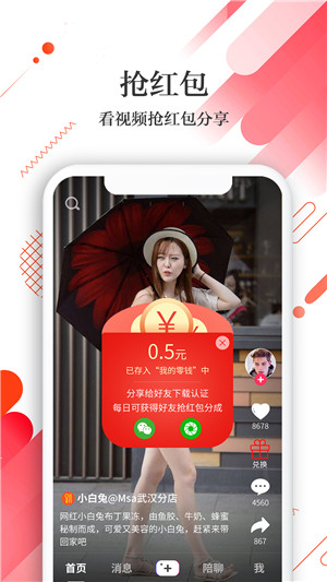 本款app是一款生活类应用程序,用户可以通过观看一定时间的视频可以抢到入驻商家的红包或礼品,红包可以直接提现,抢到的礼品可以通过线下的方式通过领取凭证兑换,入驻的商家可以通过这种方式来提高自己商品的知名度以及销售量。