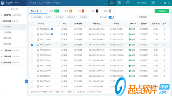 5、完成以上步骤后,暂时先不启动矿机,需要先在奇迹摩尔【监控端】确认使用的【监控端】版本最低必须是【2.2.0】版本,【系统镜像】版本最低是【Wondermole3.2.5】版本,有盘方案需要满足这两项条件,否则无法支持矿机正常运行。在确认版本无误后,可以启动矿机,【监控端】将自动扫描有盘矿机,用户可以在【监控端】内看到自己的有盘矿机。