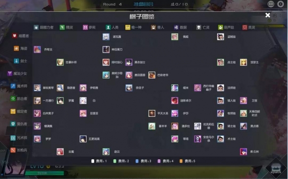 通过购买棋子时的花费,以及招募所需等级分为5类棋子。