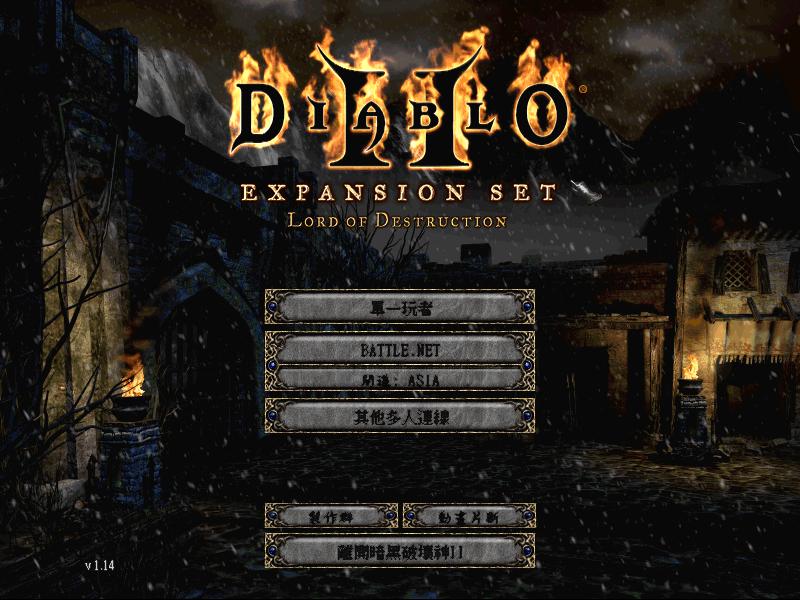 所有游戏都有自己的版本号与更新系统。暗黑2的版本都是以1.XX的版本号写出的(后面有可能加一个字母,比如1.11b、1.13c,如果两个版本号码一样就字母不一样,比如1.11和1.11b,那么差别很小)等,可以在进入游戏时候左下角看出(如图)。很多新手以为版本是个小问题,也就改一些细节的东西。对于某些游戏,这没错;但是对于暗黑2,其实版本的问题非常重大,甚至对玩法有本质上的影响(再次看出暗黑2这个游戏的复杂性)。大致上,我们可以说版本有如下影响: