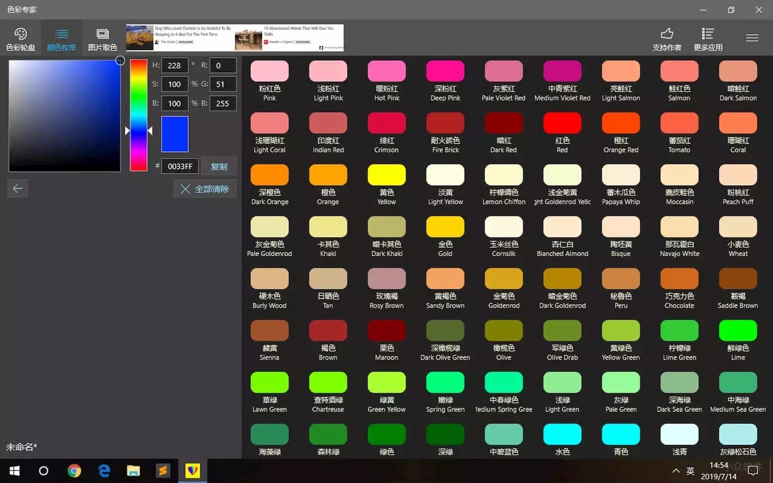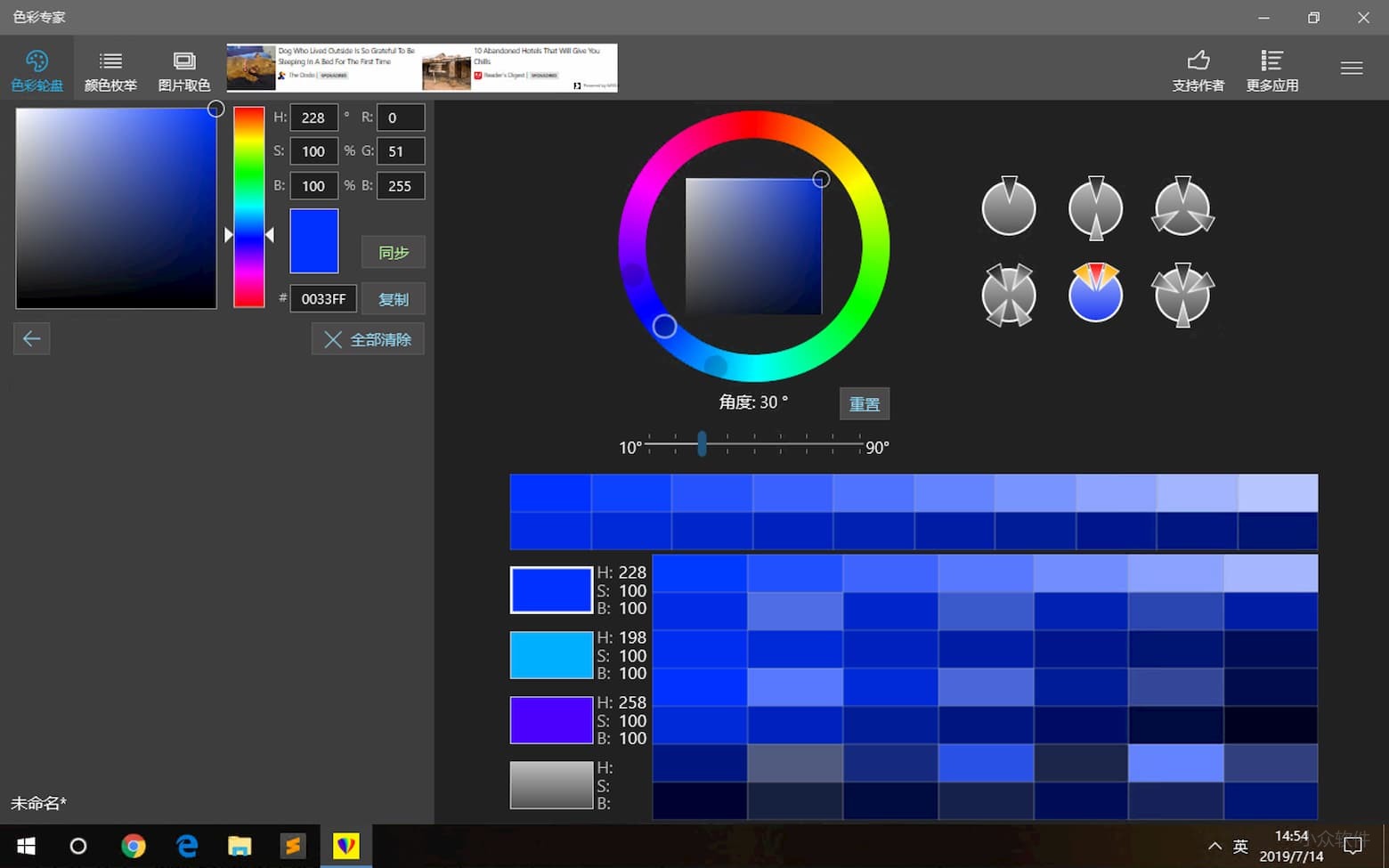 色彩专家的官网介绍也简单的要命:专业的 UWP 色彩设计应用。包括了色轮、颜色规则、常用颜色列表、图片取色等颜色工具,并且支持导出到 Photoshop 的颜色文件(.ACO) 。