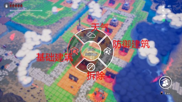 建筑分为三类,基础建筑,天气、防御建筑。第四个选项是拆除建筑,拆除建筑会原价返回建造建筑时花费的木头。