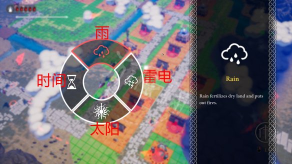 天气包括时间,太阳,雨,雷电,使用天气会消耗天气值,天气值会随着杀怪逐渐恢复。