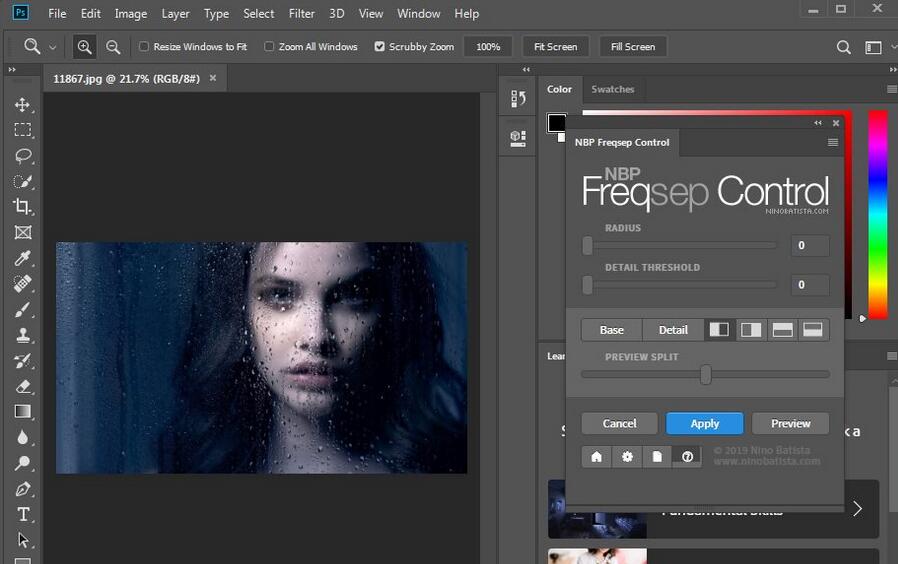 3、允许您在 "拆分" 视图中预览基本 (低频) 和细节 (高频) 结果, 或在应用前逐个查看, 以确保获得所需的结果