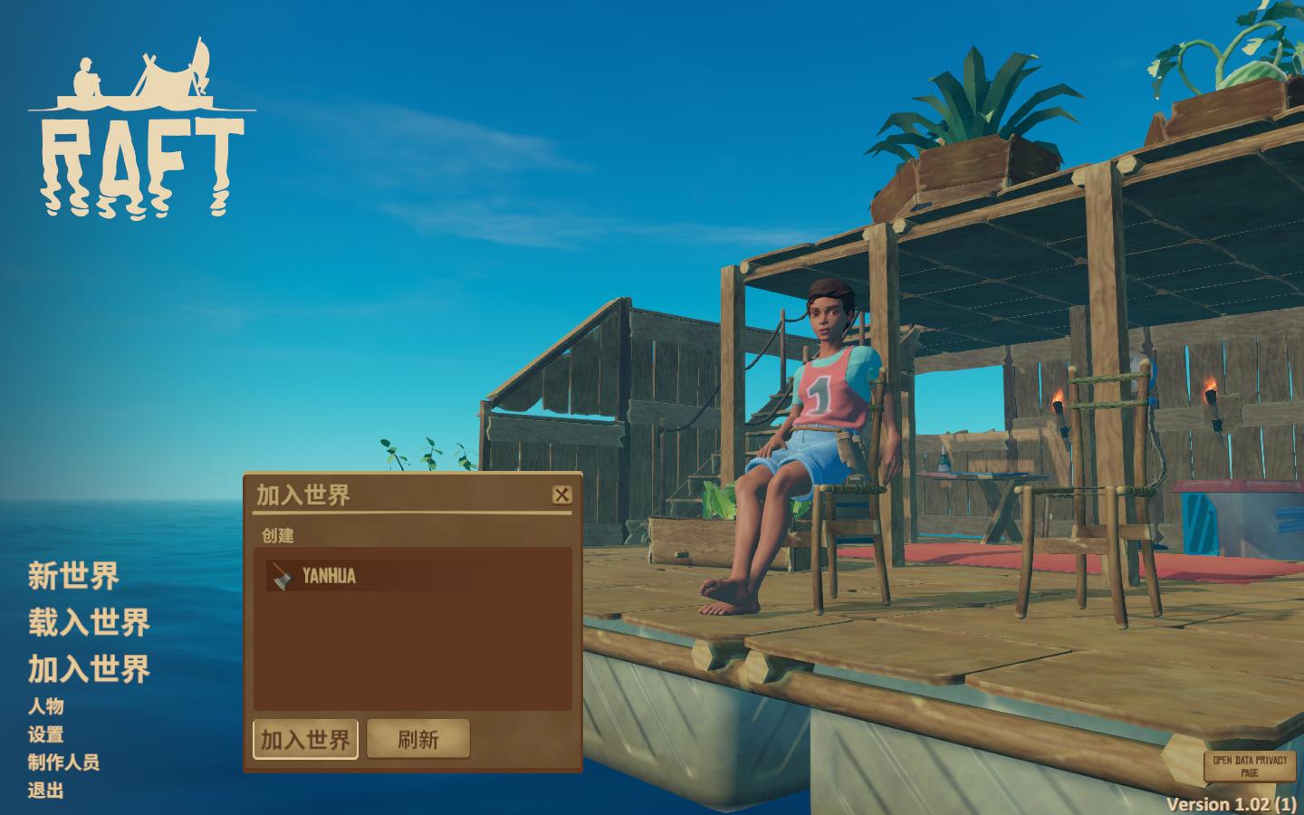 1:通过对战平台《raft木筏求生》房间进入游戏。