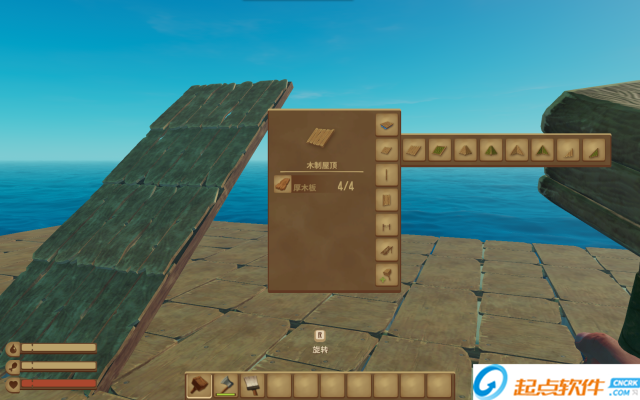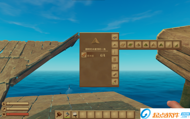 6、有素材就可建造了与扩大你的小木筏。呸~是小船