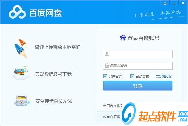 安装完成,这时候安装向导会自动退出,百度网盘会自动打开,弹出百度网盘的登陆界面,登陆自己的百度账号,就可以使用百度网盘管理文件了。