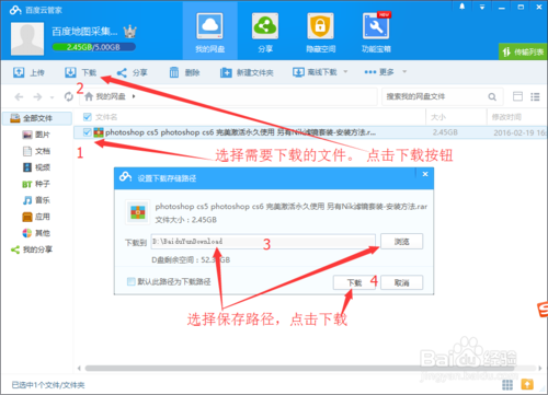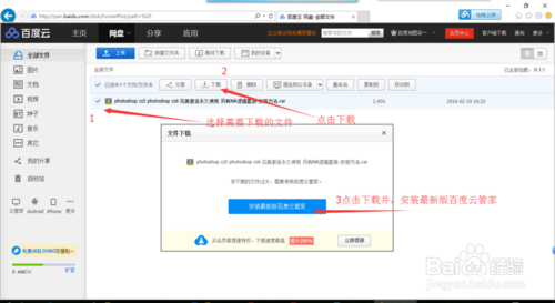 选择文件并下载,已经安装百度云管家软件的用户会直接跳转百度云管家界面,未安装云管家的用户请下载并安装,安装完成后用同一用户名密码登陆百度云管家