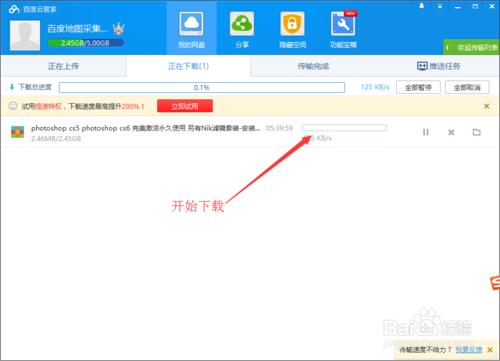 选择需要下载的文件或文件夹,开始下载,这时下载速度很快,不受限制啦!