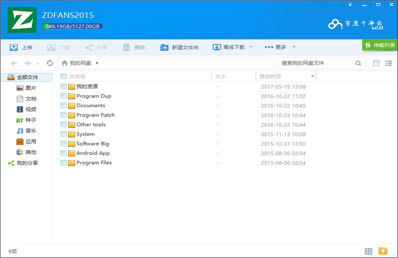 百度云管家是百度公司推出的一款云服务产品。支持便捷地查看、上传、下载百度云端各类数据,通过它存入的文件,不会占用本地空间。下载功能更稳定,支持下载断点续传,支持多文件批量下载,文件上传不会同步到本地,支持文件拖拽上传。小编提供的为百度云管家破解版,同时下载多文件不崩了,去除限速限制,这是去限速版不是加速版,所以冷门资源还是不加速,破解SVIP超级会员,任何用户登陆即显示SVIP尊贵标识,去限速限制,自动全速下载;支持同时下载多个文件提速。软件初始空间为5GB,登陆手机客户端可以获得2TB空间,支持在线播放全部格式的视频、图片等,还支持第三方应用扩展,外观简洁,更利于用户操作,支持外链分享和私密分享,外链下载速度更快,多机房备份机制,保证用户信息安全。此外,新版支持短信登录和扫码登录功能,优化了拖拽等快捷操作,优化了主界面视图。