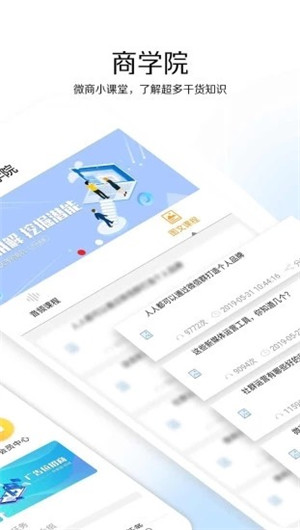 1、商学院:微商小课堂,了解超多干货知识。2、朋友圈:朋友圈交换,海量群聊互换资源。