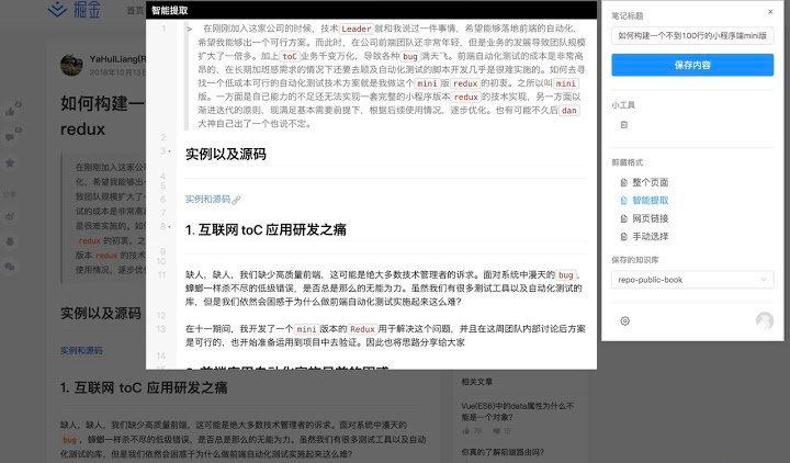 1、语雀:蚂蚁金服内部孵化出的一个知识库产品,可以用于撰写开发文档或知识内容收集。简单来讲,你可以把它看作是一个类印象笔记的产品。2、剪藏:除了开发者推荐使用的语雀,「剪藏」还支持保存内容到 GitHub、Notion 和 有道云笔记 中,如果你正在使用前面提到的任意一款产品,都可以 下载剪藏 试一试。