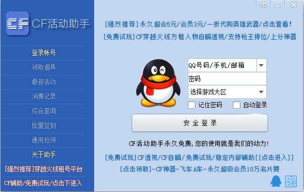 CF活动助手是一款支持穿越火线活动全自动签到领取武器软件。不想要错过CF活动但是又没有时间玩CF的朋友们可以试试它,欢迎大家下载体验。【软件特点】