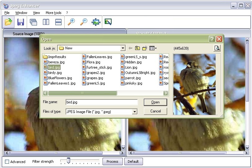 处理图像 - 如下面的屏幕截图所示,默认处理通常可以在很大程度上恢复图像质量。如果需要进一步处理,请设置“过滤器强度”参数,然后单击“处理”。您的图像将从损坏中恢复,由于低质量的jpeg压缩而发生。