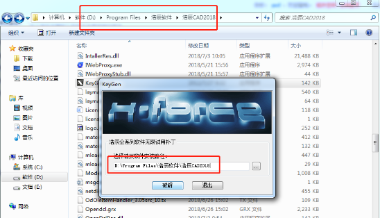 第四步:将破解工具KeyGen.exe放到浩辰CAD 2018软件的安装目录。(小编将软件安装在了D:Program Files浩辰软件浩辰CAD2018)