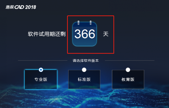 第七步:这时候在打开浩辰CAD 2018,发现试用天数变成了366天。如果到期,可再次运行破解工具进行破解。