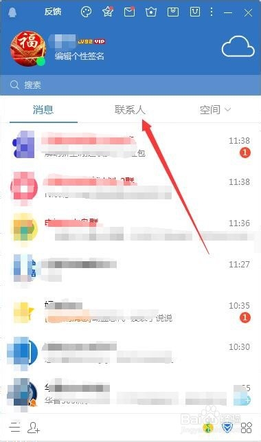 1、在电脑上打开QQ2019,然后点击联系人选项卡