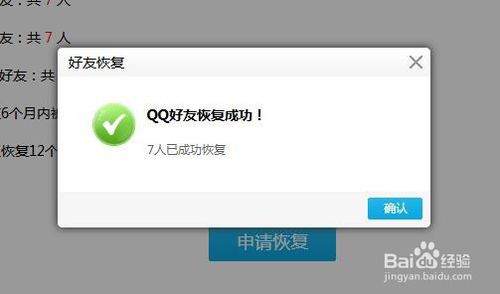 6、一会儿就会弹出恢复好友成功的提示信息