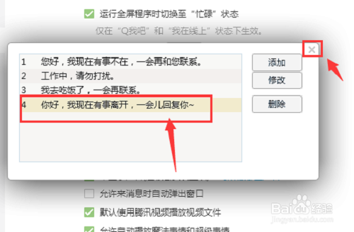 8、选择要自动回复的内容,最后关闭窗口就完成了。