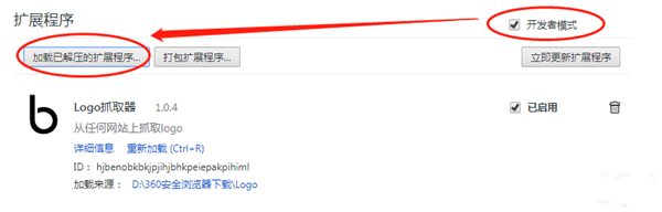 1、下载附件,使用压缩软件对该压缩文件进行解压,并保存到系统的一个任意文件夹。2、在Chrome(或者360、QQ等浏览器)的地址栏中输入:chrome://extensions/ 打开Chrome浏览器的扩展程序管理界面,并在该界面的右上方的“开发者模式”按钮上打勾。