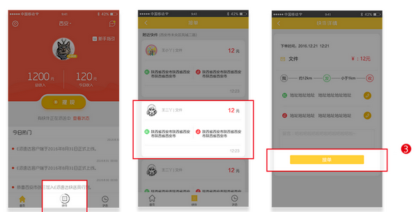 3、你可以在线注册成为快送员,获取附近送件订单信息,利用空闲时间赚取额外收益。