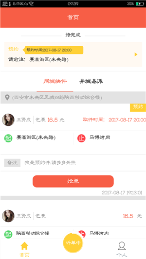 1.首页待完成列表显示下单时间。2.添加用户取消快件提醒功能。