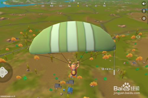 6、到达比赛场地上空时选择一个合适的位置降落,如果地面的房子比较多则说明物资多,但同时危险性也比较高,因为很多玩家都选择在这里降落。如果想避开与其他玩家过早遭遇的话,可以选择建筑物少的地方降落,不过建筑物少的话是不太好找物资的。选择降落地点是一把双刃剑,有利有弊。