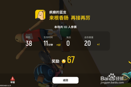 10、战斗结束以后会显示你在本场的排名与战纪,最开始玩排名肯定不会太靠前,不要灰心,多练习几次就熟练了。