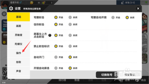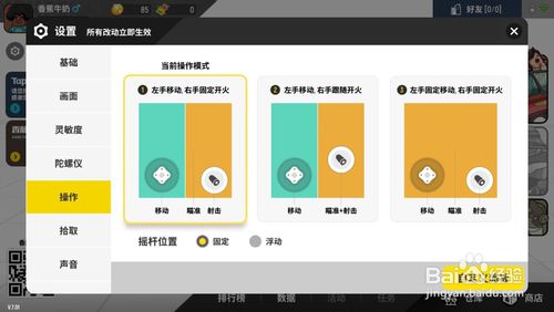 2、进入到设置界面直接点到操作界面,操作界面拥有着三种基础操作界面,这里推荐第一种,第二和第三操作比较难,这里不推荐新手使用。