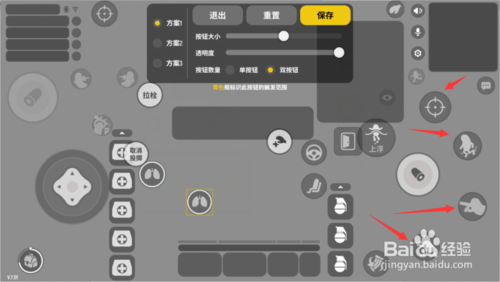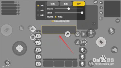 5、接着是捡装备的按钮设置,默认的位置时在武器的上方的,而这个默认位置经常会使我们在进行捡装备的时候容易误点到武器,从而将武器给进行调换了,玩家还需要重新捡起,很浪费时间,至于位置,这里推荐向上移动几CM,目的与武器分离开来,也让自己更方便操作游戏。