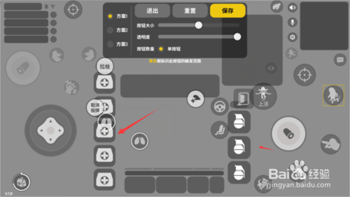 4、首先是将我们人物的跳、蹲、趴这三技能跟设置到容易操作的位置,如是之前就喜欢玩吃鸡游戏的玩家,这里需要将我们的蹲键和趴键进行个位置调换,因为这个游戏的默认位置是和一般吃鸡游戏的设置是相反的。而其他的人物技能键只需拉大和调整位置即可。