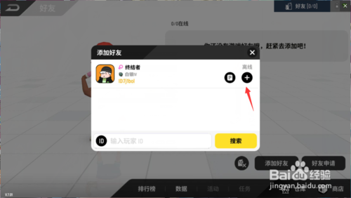 3、当我们的好友界面时空白时,可以点击下方的添加好友按钮,这时会出来新的好友,我们点击加号进行添加即可。添加完毕之后,需要对方同意之后,才能在好友界面查看。