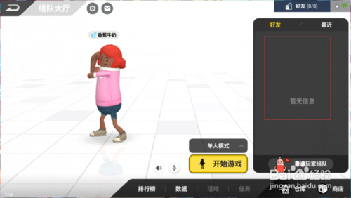 4、然后在图示位置选择游戏模式,如果是新手的话建议还是先选择单人模式吧,以免坑害队友。