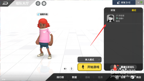 6、也能点击游戏模式旁的最近,可以查看出最近一把游戏中的临时好友,等好友上线之后就能邀请一起进行游戏体验。