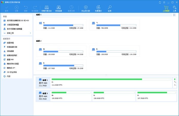 1.调整分区大小支持无损数据扩大分区、缩小分区,划分分区的容量给另一分区,合并、拆分分区等。