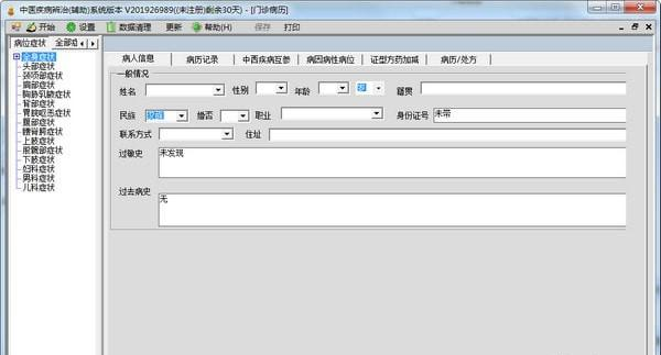 中医疾病辨治辅助系统是一款功能丰富的医疗辅助系统,内含西医1549个疾病,中医570个病症,方剂2311首,可以根据病人症状快速获得对应的治疗方案,同时支持病历的保存与查询。