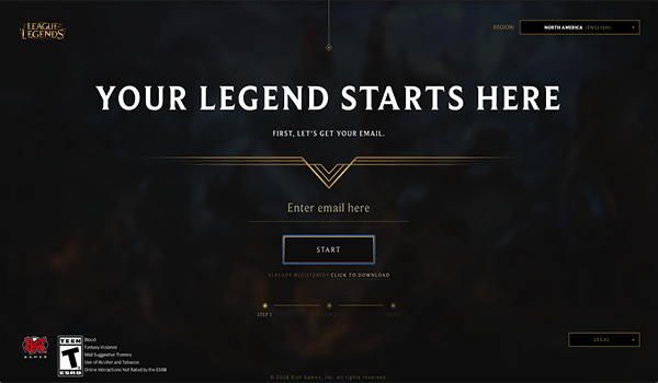 没有账号的玩家,如上图所示,点击“创建账号”,这时候会跳转到拳头公司的LOL账号注册页面,注册账号,在登陆游戏即可。