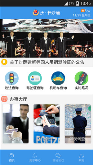 沃长沙通app是中国联通湖南分公司为长沙市公安局打造的一款便民服务应用,市民可以使用手机客户端随时在线查询违章和实时的路况信息,以及出入境、罚款缴费等事务的在线办理和预约,非常不错的便民服务平台。