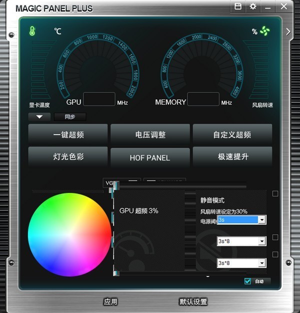 MagicPanel Plus(魔盘plus)是配合影驰全新GTX 10系列显示适配器,全新设计魔盘Plus功能更为强大,新魔盘Plus软件不仅支持新架构Pascal GPU,还能支持影驰显卡各项的调节功能,更可随玩家喜爱,支持散热器上的RGB彩色灯光效果。【软件特点】